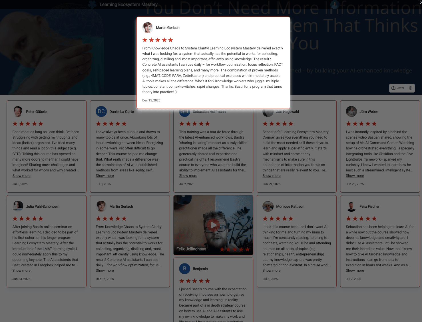 Hey Reader, Full transparency upfront: This is a sales email. But it's also a genuine invitation to two things I'm launching next week – both designed to help you turn knowledge into value and make AI your thinking partner. Both programs are in German. If that works for you, read on. OPTION 1: Learning Ecosystem Mastery (Cohort 4) Starts: Tuesday, January 20nd Focus: Turn your knowledge into value + establish AI as your thinking partner This is for you if you want to spend the first months of...